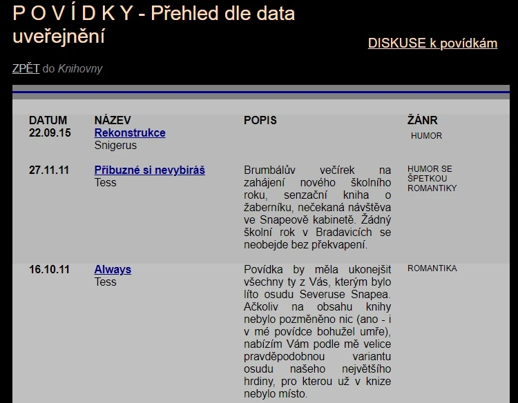 povídková sekce Alanrickman.cz, 2022